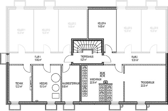 - Hohe Geschosshöhen (im EG 258 cm, im OG 261 cm lichte Höhe) → deutlich über Standardmaß